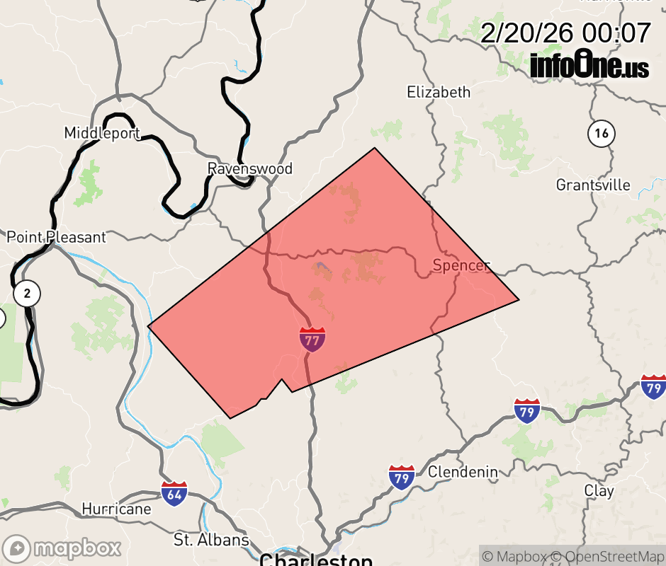 Canceled 2/20/26 12:20 AM Severe Thunderstorm Warning issued February 20 at 12:05AM EST until February 20 at 12:30AM EST by NWS Charleston WV SVRRLX The National Weather Service in Charleston West Virginia has issued a * Severe Thunderstorm Warning for... East central Mason County in western West Virginia... Northeastern Putnam County in western West Virginia... Southwestern Wirt County in northwestern West Virginia... Northwestern Roane County in central West Virginia... Central Jackson County in northwestern West Virginia... * Until 1230 AM EST. * At 1205 AM EST, a severe thunderstorm was located 7 miles northwest of Kenna, or 8 miles southwest of Ripley, moving northeast at 50 mph. HAZARD...Quarter size hail. SOURCE...Radar indicated. IMPACT...Damage to vehicles is expected. * Locations impacted include... Ripley, Spencer, Kenna, Reedy, Statts Mills, Harmony, Given, Kentuck, Liberty, Evans, Leroy, Fairplain, Gay, and Gandeeville. This includes Interstate 77 in West Virginia between mile markers 122 and 140. ![]() |