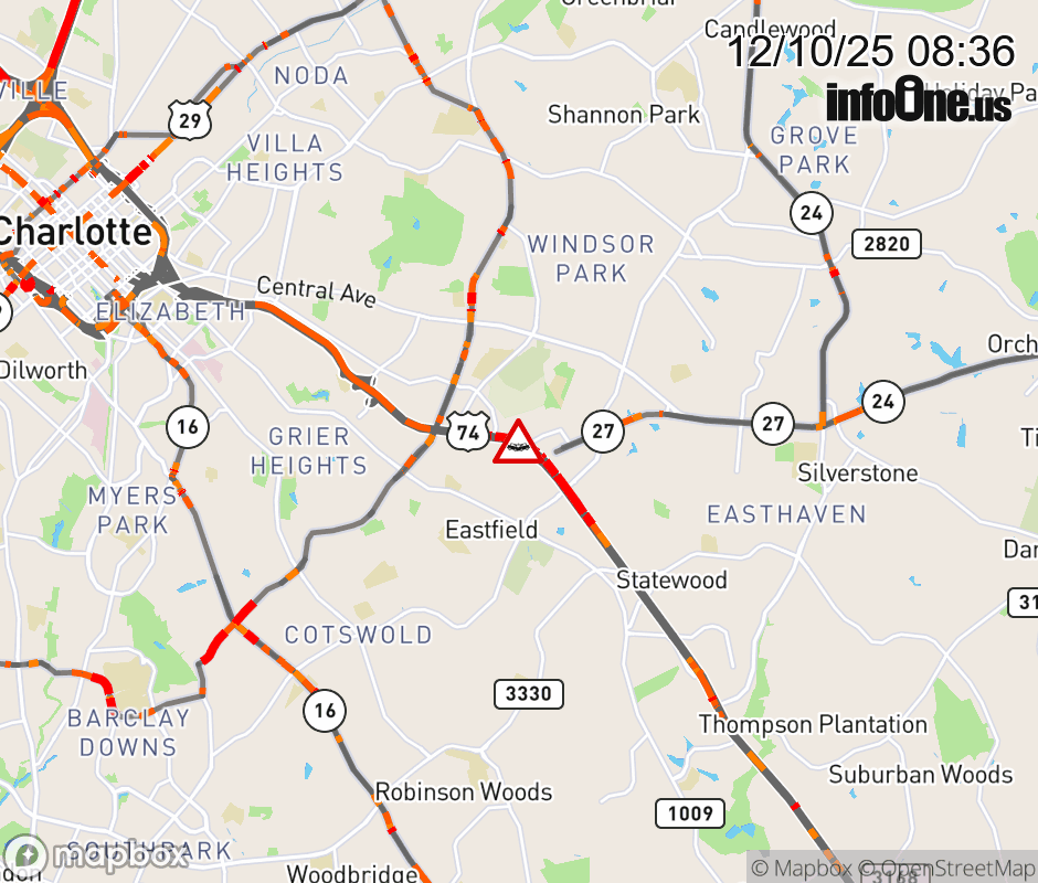 The left lane is closed at Albemarle Rd. Updated: Wed 12/10/25 8:36 AM EST ![]() Updated: Wed 12/10/25 8:36 AM EST |