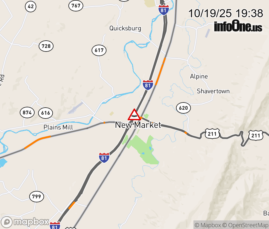 On I-81 at mile marker 265.3 in the County of Shenandoah, motorists can expect delays due to a vehicle crash. The south right shoulder is closed. Updated: Sun 10/19/25 7:38 PM EDT ![]() Updated: Sun 10/19/25 7:38 PM EDT |