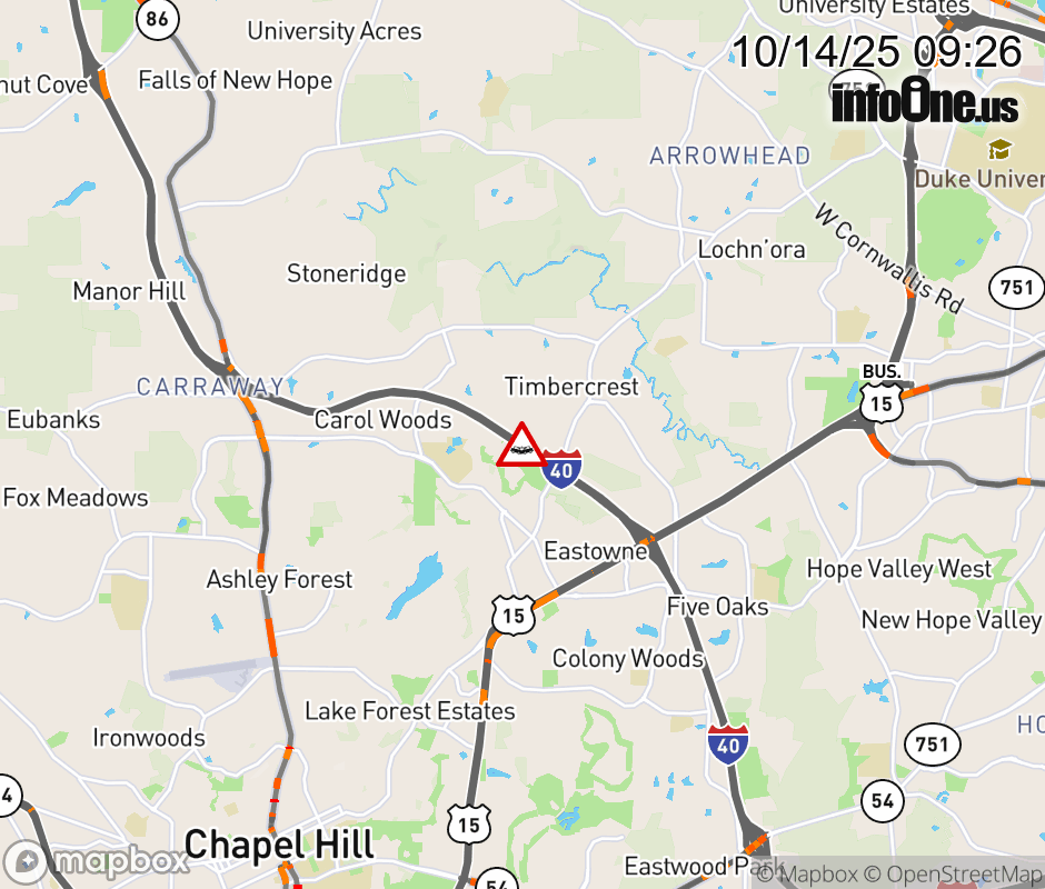 The right lane is closed past Exit 270 (US 501). Updated: Tue 10/14/25 9:26 AM EDT ![]() Updated: Tue 10/14/25 9:26 AM EDT |