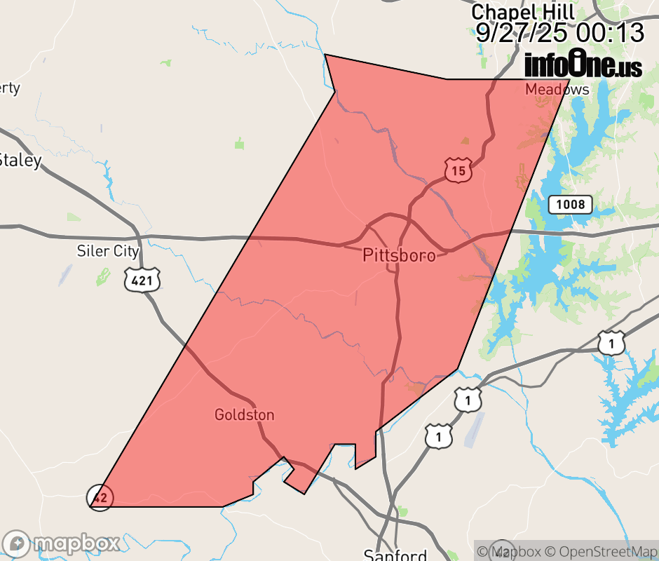Canceled 9/27/25 12:56 AM Flood Advisory issued September 27 at 12:10AM EDT until September 27 at 2:15AM EDT by NWS Raleigh NC * WHAT... Flooding caused by excessive rainfall continues. * WHERE... A portion of central North Carolina, including the following county, Chatham. * WHEN... Until 215 AM EDT. * IMPACTS... Minor flooding in low-lying and poor drainage areas. * ADDITIONAL DETAILS... - At 1207 AM EDT, The heavy rainfall has ended and mostly light to moderate rain remains. Additional rises along creeks and streams are expected to slowly crest within the next hour or two with gradual improvement thereafter. Minor flooding is ongoing or expected to begin shortly in the advisory area. Between 1 and 2 inches of rain have fallen. - Additional rainfall amounts up to 1 inch are expected over the area. This additional rain will result in minor flooding. - Some locations that will experience flooding include... Pittsboro, Goldston, Bynum, Fearrington and Jordan Lake. ![]() |