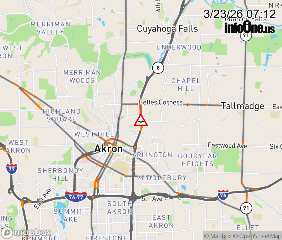 The right shoulder is blocked on SR-8 South/SR-59 West beyond SR-261/Tallmadge Ave, due to a crash. ![]() |