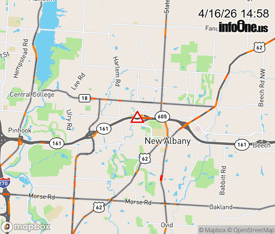 Expect lane closures on Ramp from New Albany Rd to OH-161 W, due to a crash. ![]() |