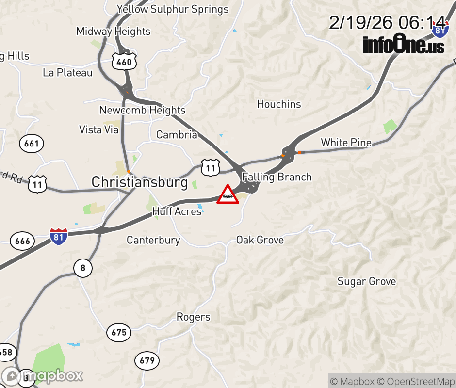 On I-81 at mile marker 117 in the County of Montgomery, motorists can expect delays due to a vehicle crash. The south right shoulder is closed. ![]() |