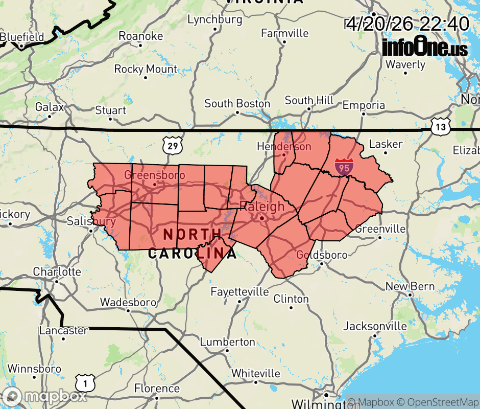 Frost Advisory issued April 20 at 10:39PM EDT until April 21 at 8:00AM EDT by NWS Raleigh NC * WHAT... Temperatures as low as 33 will result in frost formation. * WHERE... The northern Piedmont, northern Coastal Plain, and a portion of the northern Sandhills and central Coastal Plain of North Carolina. * WHEN... From 2 AM to 8 AM EDT Tuesday. * IMPACTS... Frost could harm or kill sensitive outdoor vegetation or plants if left uncovered. ![]() |