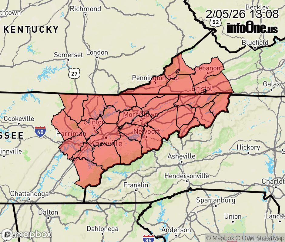 Canceled 2/6/26 2:00 AM Special Weather Statement issued February 5 at 1:06PM EST by NWS Morristown TN Cold temperatures tonight will continue to cause slick travel conditions through at least Friday morning. Icy spots on roads will likely persist in many locations due to residual moisture on roads that will freeze as temperature fall into the 20s. Be prepared for slick spots, especially on untreated secondary roadways and overpasses. Use caution if traveling tonight and Friday morning. ![]() |