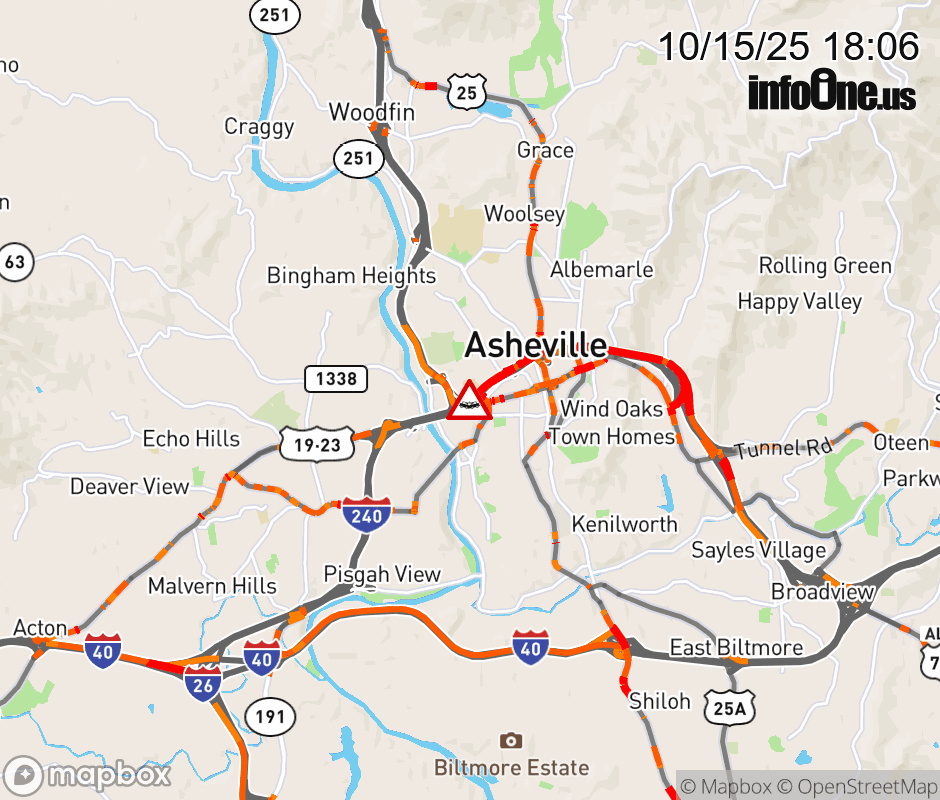 The right shoulder is closed at Exit 4A, I-26 West. Updated: Wed 10/15/25 6:06 PM EDT ![]() Updated: Wed 10/15/25 6:06 PM EDT |