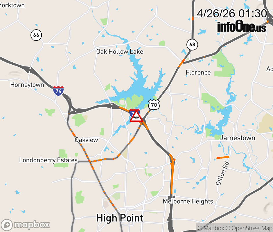 The road is closed near Exit 67 (US 70). ![]() |