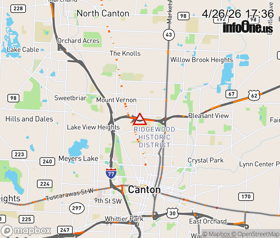 Expect lane closures on US-62 East beyond Cleveland Ave NW, due to a crash. ![]() |