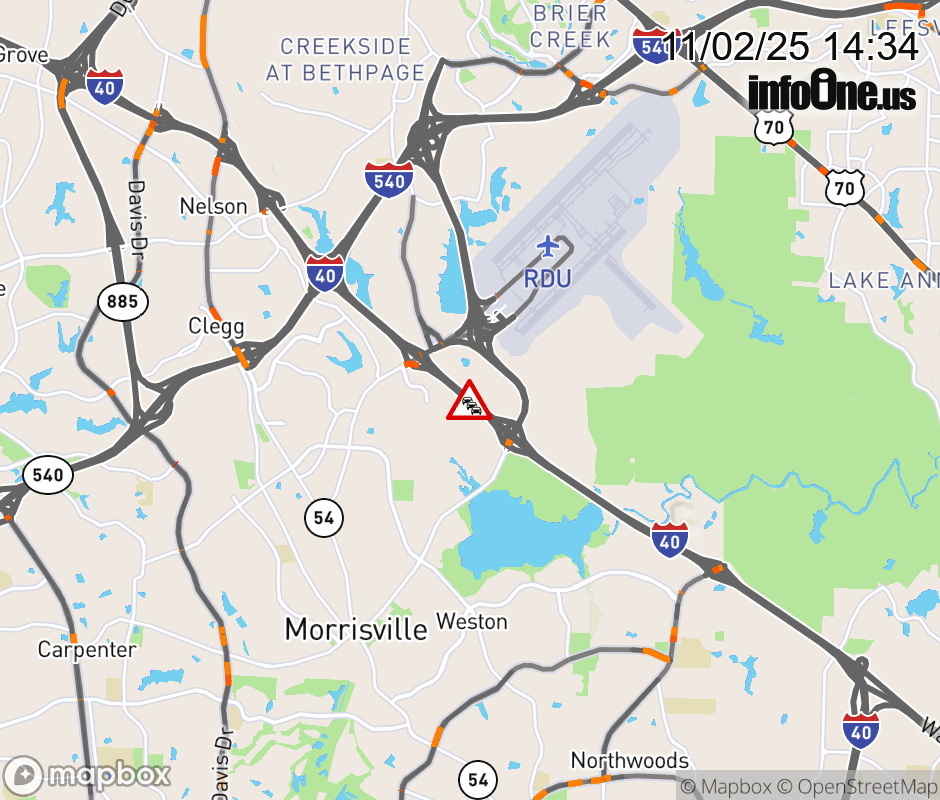 The left lane is closed past Exit 285 (Aviation Pkwy).