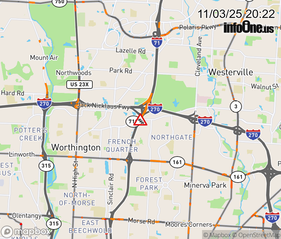 The 2 left lanes are blocked on I-71 North at I-270 (North Side), due to repairs/maintenance. ![]()  |