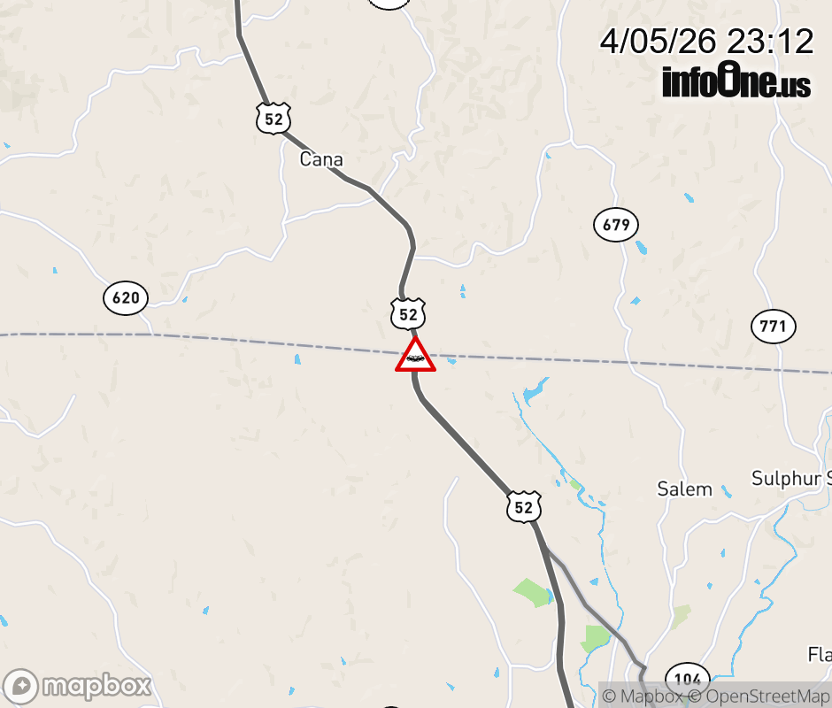 On US-52 North in the County of Carroll, in the vicinity of Skyview Dr; Rt. 685N/S (Carroll County); / SKYVIEW DR, motorists can expect delays due to a vehicle crash. Lane closures exist. ![]() |
