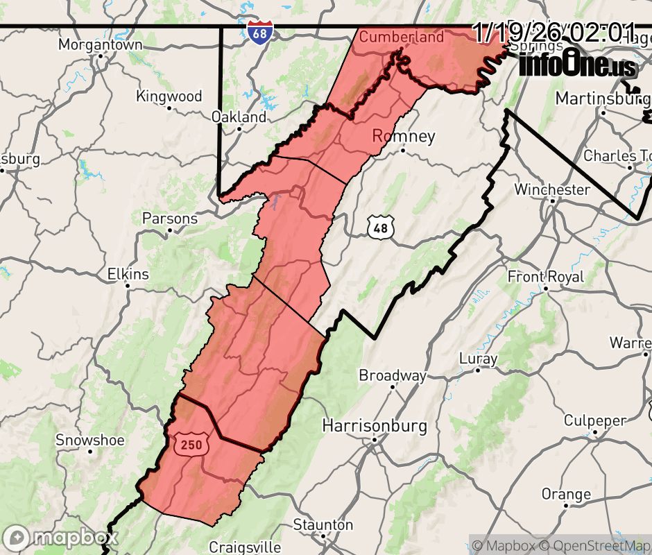Canceled 1/19/26 9:33 AM Cold Weather Advisory issued January 19 at 2:00AM EST until January 20 at 1:00PM EST by NWS Baltimore MD/Washington DC * WHAT... Very cold wind chills of 10 to 20 below zero expected. * WHERE... In Maryland, Central and Eastern Allegany, Eastern Garrett, Extreme Western Allegany, and Western Garrett Counties. In Virginia, Eastern Highland County. In West Virginia, Eastern Grant, Eastern Mineral, Eastern Pendleton, and Western Mineral Counties. * WHEN... From 8 PM this evening to 1 PM EST Tuesday. * IMPACTS... The cold wind chills could result in hypothermia or frostbite if precautions are not taken. Wind chill values can lead to hypothermia with prolonged exposure. * ADDITIONAL DETAILS... The coldest wind chills will be at elevations above 2000 feet between midnight tonight and 9 AM Tuesday. ![]() |