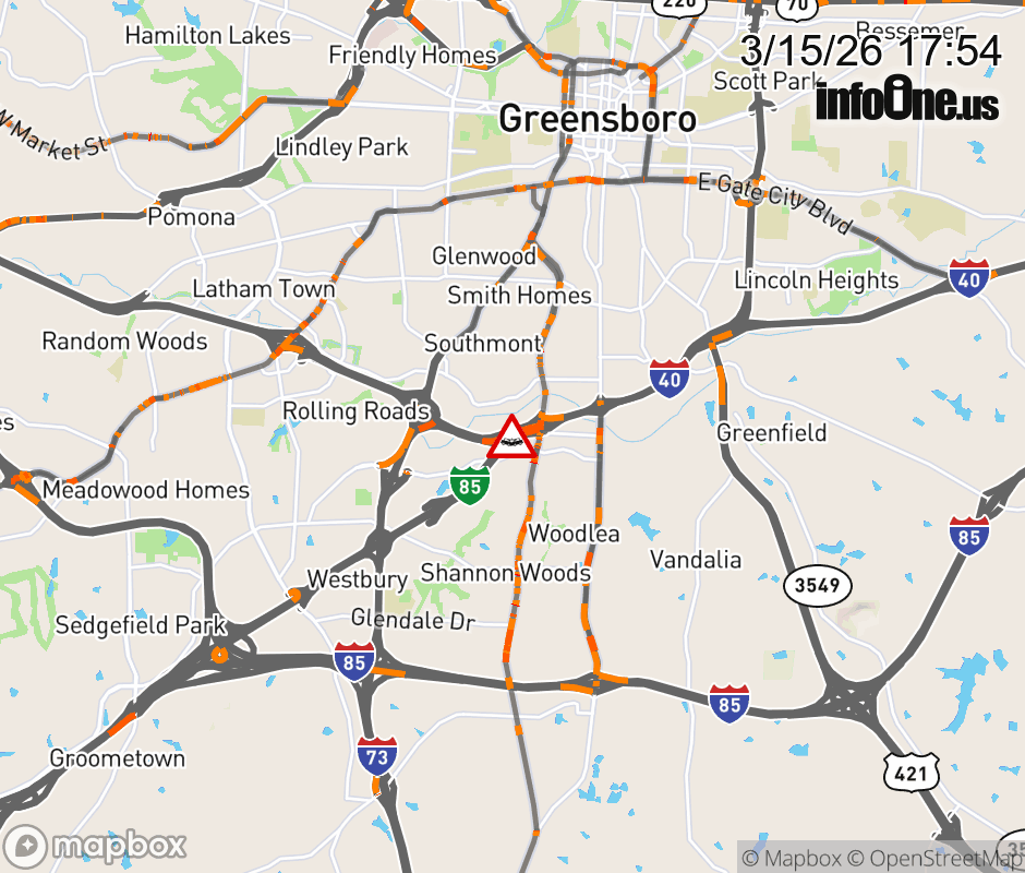 The left lane is closed near Exit 220 (Randleman Rd). ![]() |