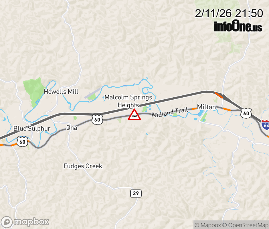 Vehicle Crash on US-60 & Kirby Road. Updated: Wed 2/11/26 9:50 PM EST ![]() Updated: Wed 2/11/26 9:50 PM EST |