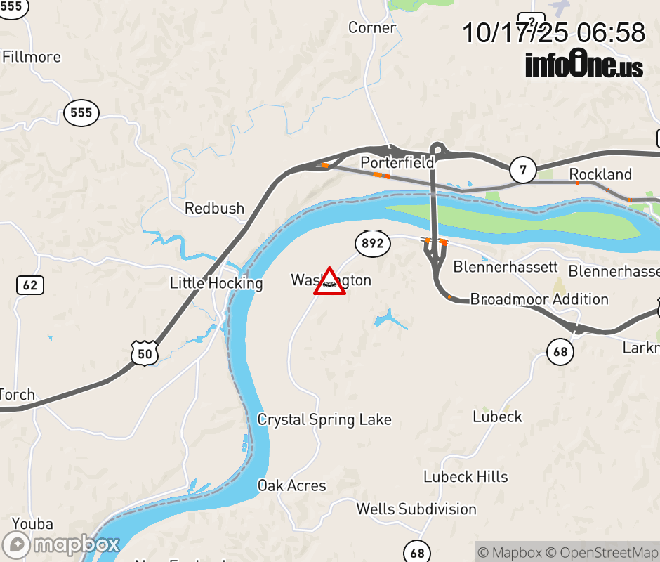 Vehicle Crash on WV-892 (8800 BLK of Dupont Rd) in Washington. ![]() |