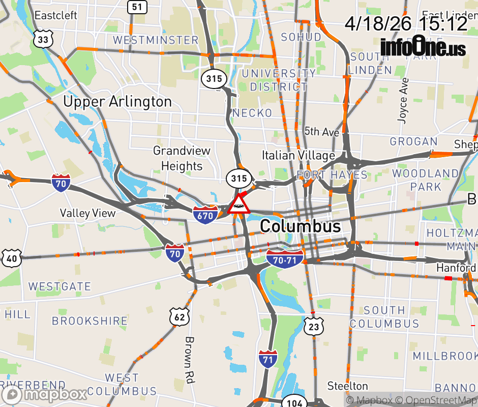 Expect lane closures on Ramp SR-315 North to I-670 East, due to a crash. ![]() |