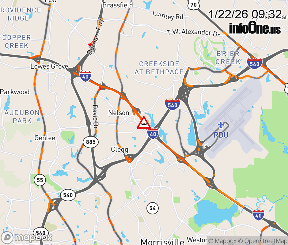The left shoulder is closed at Exit 283 (I-540). Updated: Thu 1/22/26 9:32 AM EST ![]() Updated: Thu 1/22/26 9:32 AM EST |