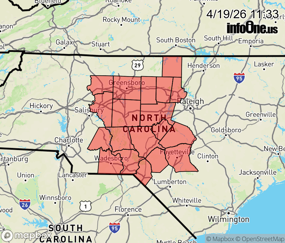 Special Weather Statement issued April 19 at 11:31AM EDT by NWS Raleigh NC As a cold front moves through the region this morning little if any rain is expected to occur. Humidity values will drop to 15 to 25 percent this afternoon, and northwest winds gusting to 25 to 35 mph, fuels will dry out quickly. This will result in an increased risk for the rapid spread of wildfires through early evening. Additionally, Monday will be another very dry day with gusty winds, so expect worsening fire weather conditions across all of Central North Carolina. Residents and visitors are urged to exercise caution handling any potential ignition source, including machinery, cigarettes, and matches. Be sure to properly discard all smoking materials. Any dry grasses and tree litter that ignite will have the potential to spread quickly. A statewide burn ban is in effect for North Carolina. ![]() |