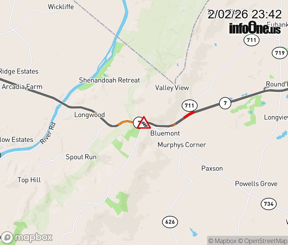 On VA-7 East in the County of Clarke, in the vicinity of Blueridge Mountain Rd; Rt. 601N/S (Clarke County); County/City/Town Line: MT WEATHER RD, motorists can expect delays due to an incident. Updated: Mon 2/2/26 11:42 PM EST ![]() Updated: Mon 2/2/26 11:42 PM EST |