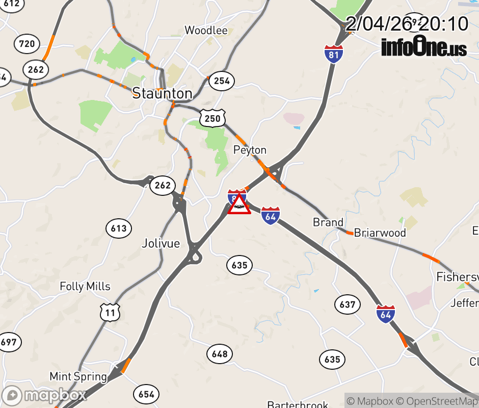 On I-81S Ramp 221A at mile marker 0.3 in the County of Augusta, motorists can expect delays due to a vehicle crash. The south left shoulder and left lane are closed. Updated: Wed 2/4/26 8:10 PM EST ![]() Updated: Wed 2/4/26 8:10 PM EST |