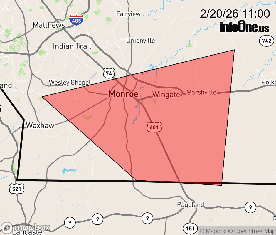 Canceled 2/20/26 11:30 AM Special Weather Statement issued February 20 at 10:59AM EST by NWS Greenville-Spartanburg SC At 1059 AM EST, Doppler radar was tracking gusty showers along a line extending from 17 miles northwest of Wadesboro to 3 miles west of Monroe. Movement was southeast at 35 mph. HAZARD...Wind gusts up to 40 mph. SOURCE...Radar indicated. IMPACT...Gusty winds could knock down tree limbs and blow around unsecured objects. Locations impacted include... Monroe, Wingate, Marshville, Mineral Springs, Sturdivants, Wesley Chapel, and Trinity. ![]() |