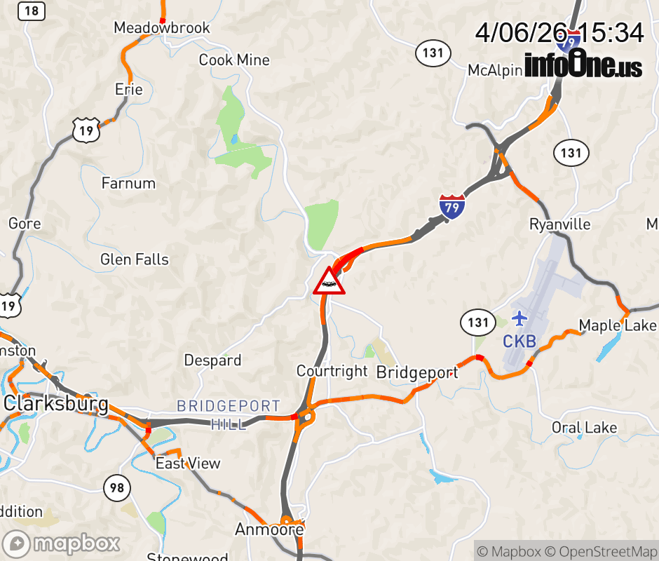 Vehicle Crash on I-79S at Mile Marker 121.0. Updated: Mon 4/6/26 3:34 PM EDT ![]() Updated: Mon 4/6/26 3:34 PM EDT |