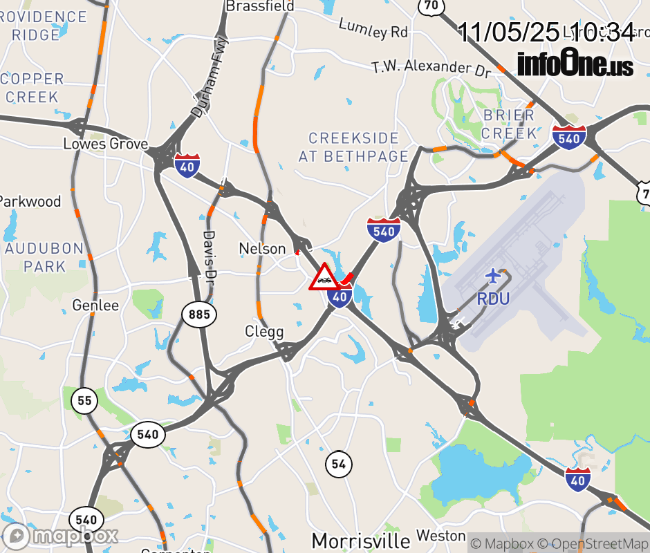 The right shoulder is closed past Exit 283 (I-540). Updated: Wed 11/5/25 10:34 AM EST ![]() Updated: Wed 11/5/25 10:34 AM EST |