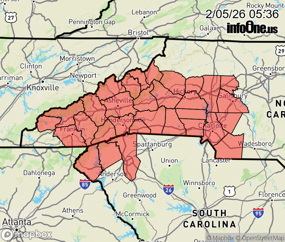 Canceled 2/5/26 10:00 AM Special Weather Statement issued February 5 at 5:35AM EST by NWS Greenville-Spartanburg SC Light snow showers or flurries will move northeast across the area this morning. Most locations should only see a trace on mainly grassy and elevated surface, but localized accumulations of up to an inch are possible in the heavier showers. Black ice is possible where temperatures are below freezing with roads remaining wet from melting snow. Be prepared for slick spots, especially on bridges and overpasses and any untreated roadways. Use extra caution when walking on sidewalks, driveways, and in parking lots. ![]() |