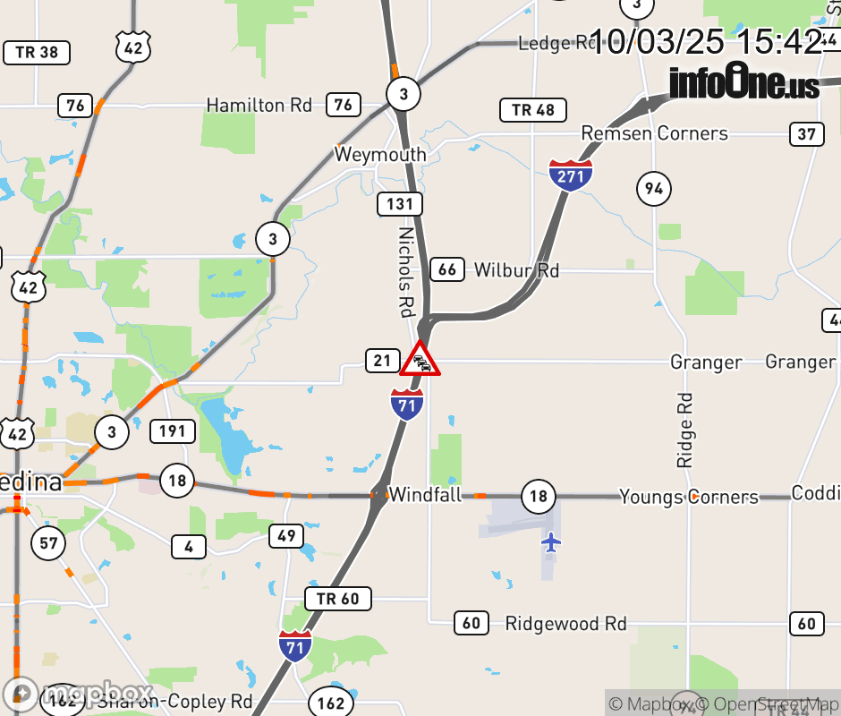 The right lane is blocked on I-71 South beyond SR-3, due to repairs/maintenance. Updated: Fri 10/3/25 3:42 PM EDT ![]() Updated: Fri 10/3/25 3:42 PM EDT |
