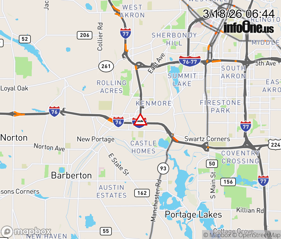 The left shoulder is blocked on I-76 East at I-277/US-224, due to a disabled vehicle. ![]() |