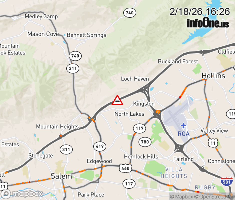 On I-81 at mile marker 142.7 in the County of Roanoke, motorists can expect delays due to a vehicle crash. The south right shoulder is closed. ![]() |