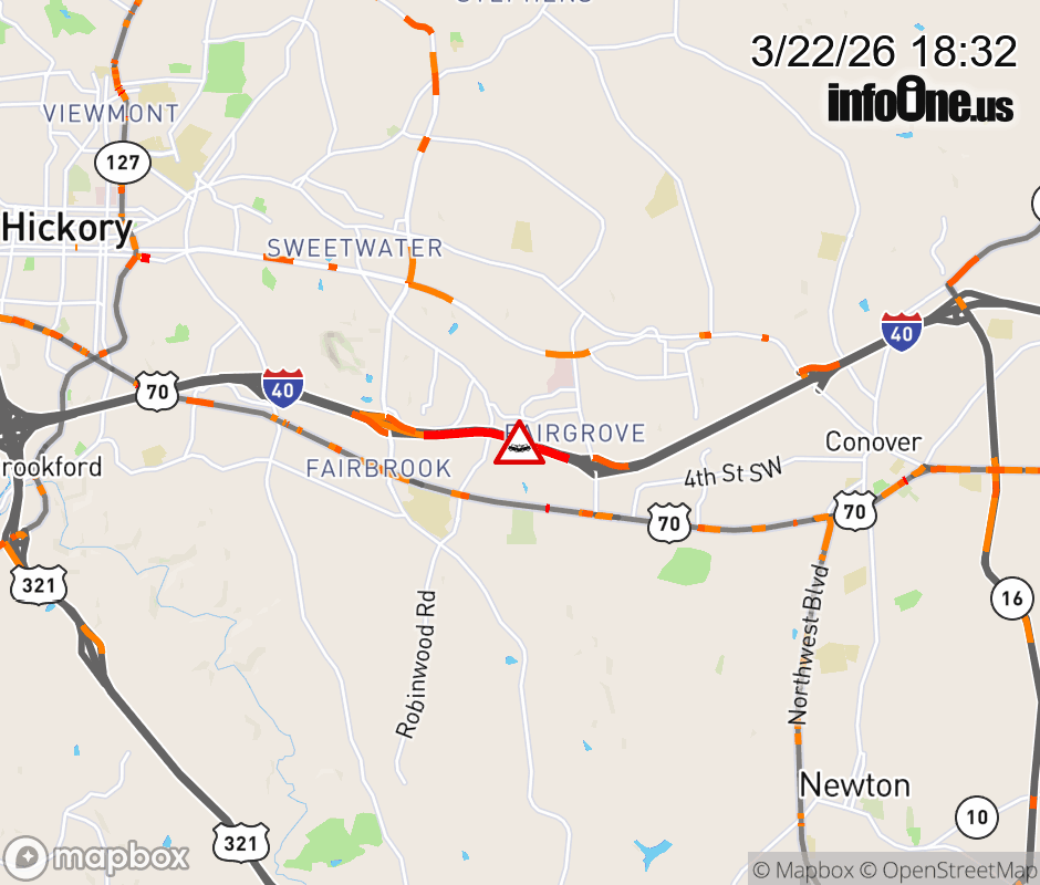 Canceled 3/22/26 7:28 PM Location: I-40E at MM 128, NC Vehicle Crash.