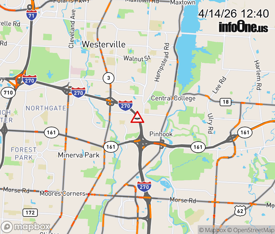 The left shoulder is blocked on I-270 North beyond SR-161, due to a crash. ![]() |