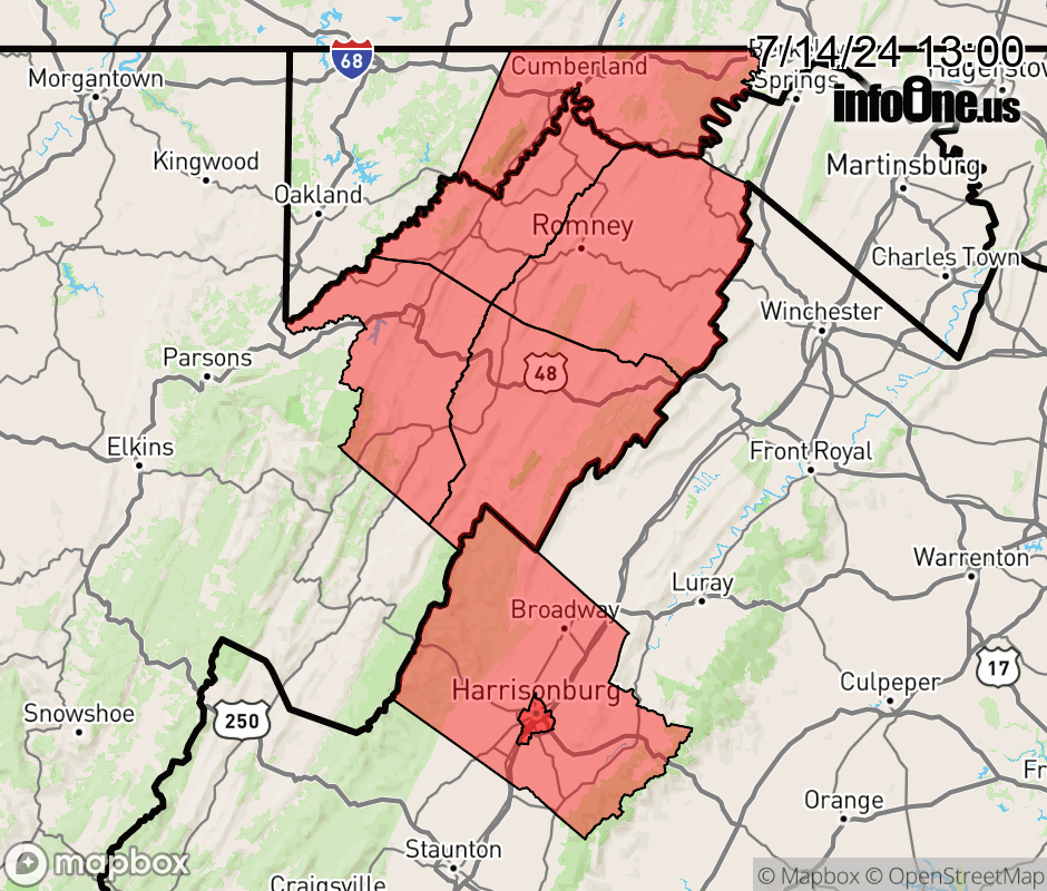 Canceled 7/14/24 9:16 PM Excessive Heat Watch issued July 14 at 12:59PM EDT until July 16 at 8:00PM EDT by NWS Baltimore MD/Washington DC * WHAT... For the Heat Advisory, heat index values around 100 to 104 expected. For the Excessive Heat Watch, dangerously hot conditions with heat index values up to 105 possible. * WHERE... In Maryland, Central and Eastern Allegany County. In Virginia, Rockingham County. In West Virginia, Hampshire, Hardy, Eastern Grant and Eastern Mineral Counties. * WHEN... For the Heat Advisory, from 11 AM to 8 PM EDT Monday. For the Excessive Heat Watch, from Tuesday morning through Tuesday evening. * IMPACTS... Extreme heat and humidity will significantly increase the potential for heat related illnesses, particularly for those working or participating in outdoor activities. * ADDITIONAL DETAILS... Very warm and humid conditions will persist into the overnight hours. Ensure to stay hydrated and find ways to stay cool. ![]() |
