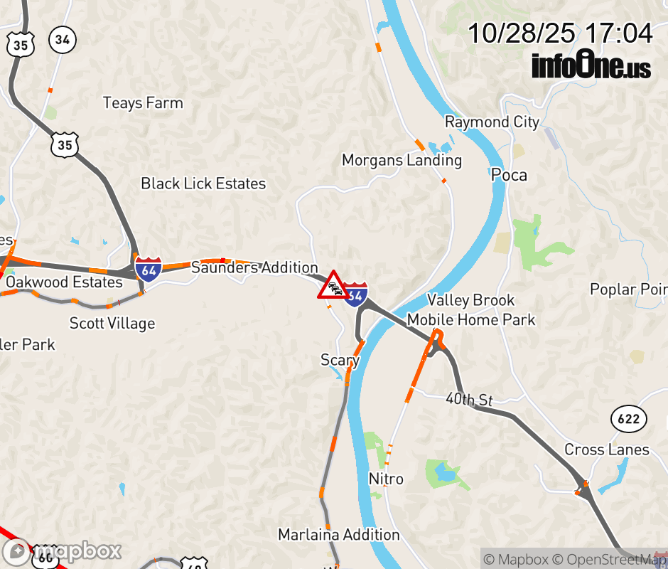 | Canceled 10/28/25 6:28 PM Location: I-64 at MM 43.0, WV Congestion.
