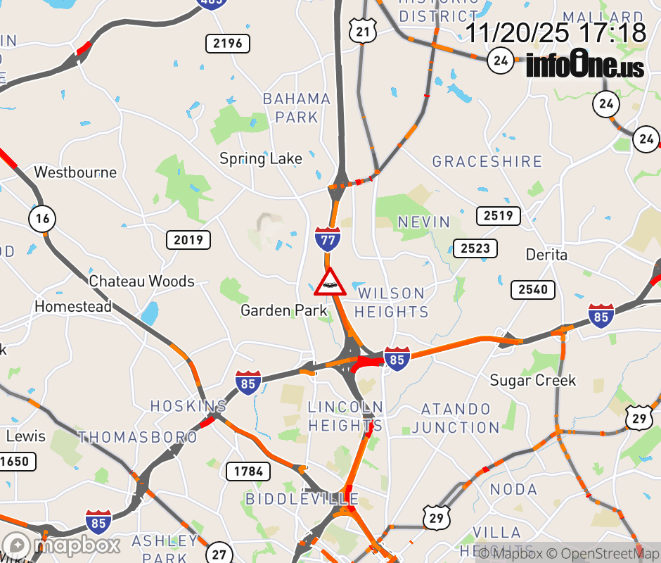 Crash on I-77 North Bound prior to exit 16, Sunset Rd. The left general purpose lane is blocked ![]() |