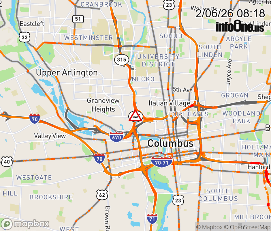 Expect lane closures on SR-315 South beyond I-670 East, due to a crash. ![]() |