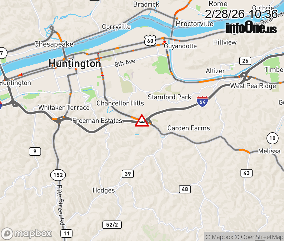 Vehicle Crash on WV-10/I-64WB Hal Greer Exit . The northbound right lane is closed. ![]() |