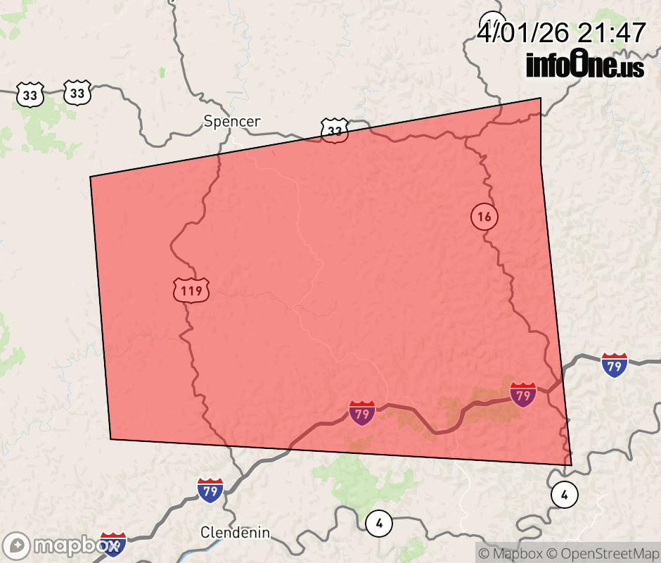 Canceled 4/1/26 10:15 PM Special Weather Statement issued April 1 at 9:45PM EDT by NWS Charleston WV At 945 PM EDT, Doppler radar was tracking a strong thunderstorm near Amma, or 12 miles south of Spencer, moving east at 35 mph. HAZARD...Wind gusts up to 40 mph and pea size hail. SOURCE...Radar indicated. IMPACT...Gusty winds could knock down tree limbs and blow around unsecured objects. Minor hail damage to vegetation is possible. Locations impacted include... Arnoldsburg, Big Otter, Wallback, Amma, Nebo, Millstone, Harmony, Tariff, Walton, Left Hand, Orma, Looneyville, Chloe, and Gandeeville. This includes Interstate 79 between mile markers 24 and 40. ![]() |