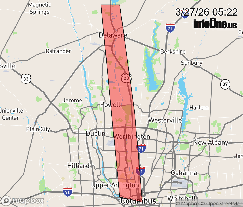 Canceled 3/27/26 11:33 AM Flood Advisory issued March 27 at 5:21AM EDT until March 27 at 8:00PM EDT by NWS Wilmington OH ...The National Weather Service in Wilmington has issued a Flood Advisory for the following rivers... Olentangy River near Worthington. * WHAT... Flooding caused by excessive rainfall is expected. * WHERE... Olentangy River near Worthington. * WHEN... From early this morning to this evening. * IMPACTS... At 8.0 feet, Flooding of yards begins along the Olentangy River near Mount Air in northern Franklin County, only in low-lying areas between Olentangy River Road and the river. * ADDITIONAL DETAILS... - At 5:00 AM EDT Friday the stage was 7.3 feet. - Forecast...The river is expected to rise to a crest of 8.0 feet this morning. - Action stage is 8.0 feet. - Flood stage is 11.0 feet. ![]() |