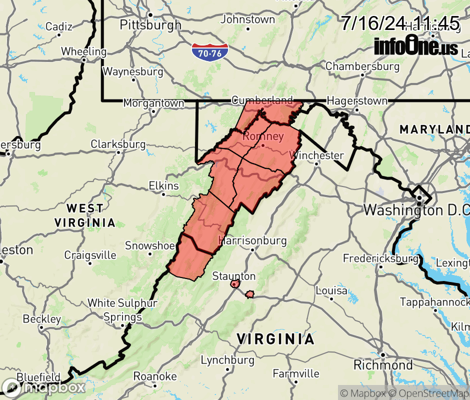 Canceled 7/16/24 8:00 PM Heat Advisory issued July 16 at 11:44AM EDT until July 16 at 8:00PM EDT by NWS Baltimore MD/Washington DC * WHAT... Heat index values around 100 expected. * WHERE... In Maryland, Central and Eastern Allegany County. In Virginia, Augusta and Eastern Highland Counties. In West Virginia, Hampshire, Hardy, Eastern Grant, Eastern Mineral and Eastern Pendleton Counties. * WHEN... Until 8 PM EDT this evening. * IMPACTS... Hot temperatures and high humidity may cause heat illnesses to occur. * ADDITIONAL DETAILS... Very warm and humid conditions will persist into the overnight hours, adding heat stress to those without air conditioning. Ensure to stay hydrated and find ways to stay cool. ![]() |