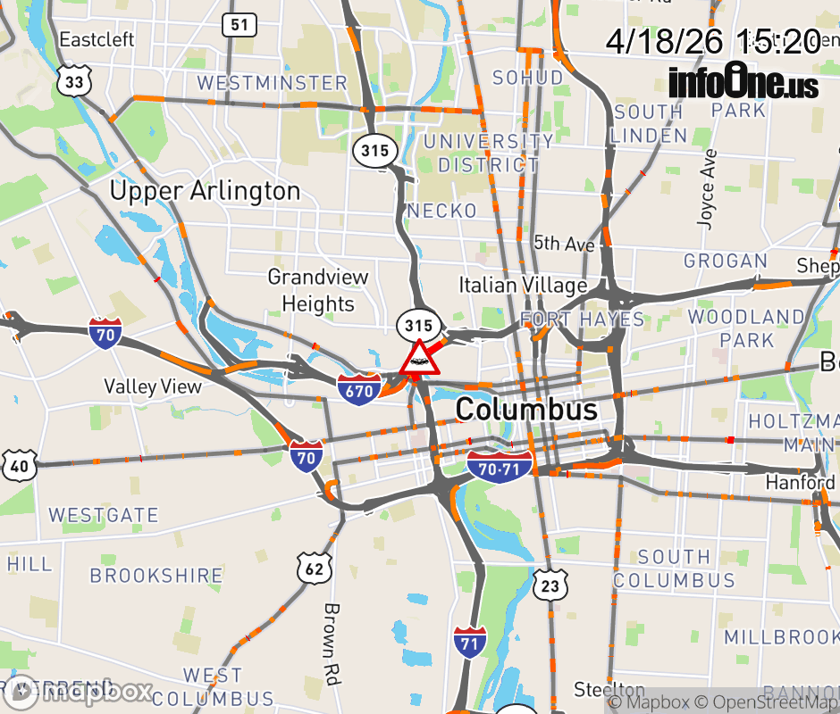 Expect lane closures on Ramp I-670 West to SR-315 South, due to a crash. ![]() |