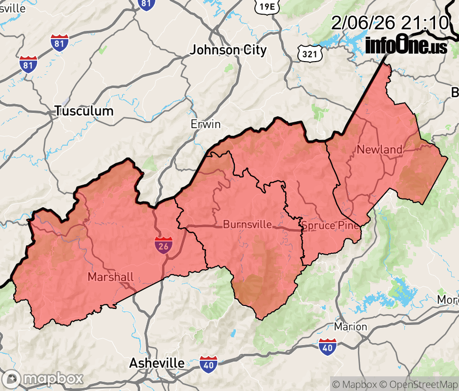 Canceled 2/7/26 5:08 AM Winter Weather Advisory issued February 6 at 9:08PM EST until February 7 at 7:00AM EST by NWS Greenville-Spartanburg SC * WHAT... Snow expected. Additional accumulations of 1 to 4 inches. Winds gusting as high as 60 mph, and up to 70 mph on higher ridgetops. * WHERE... Avery, Madison, Mitchell, and Yancey Counties. * WHEN... Until 7 AM EST Saturday. * IMPACTS... The heavy snow will make many roads impassable and may produce widespread power outages due to the weight of the snow on tree limbs and power lines. Very strong winds could cause extensive damage to trees and power lines. * ADDITIONAL DETAILS... The very strong wind gusts will also result in areas of blowing snow late tonight and into Saturday morning, which could sharply reduce the visibility. ![]() |