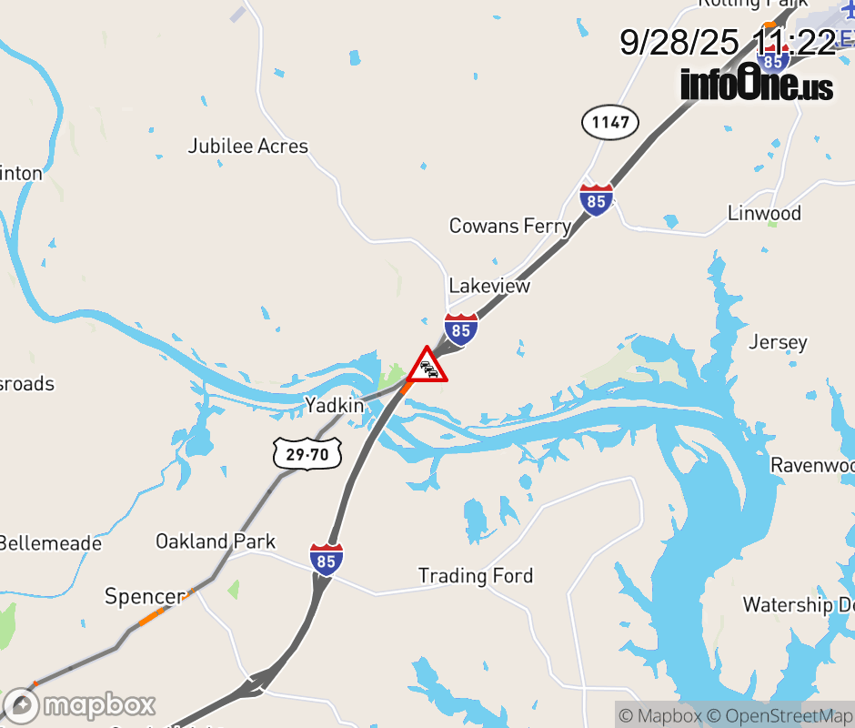 The 2 right lanes are closed at Exit 84 (US 29). Updated: Sun 9/28/25 11:22 AM EDT ![]() Updated: Sun 9/28/25 11:22 AM EDT |