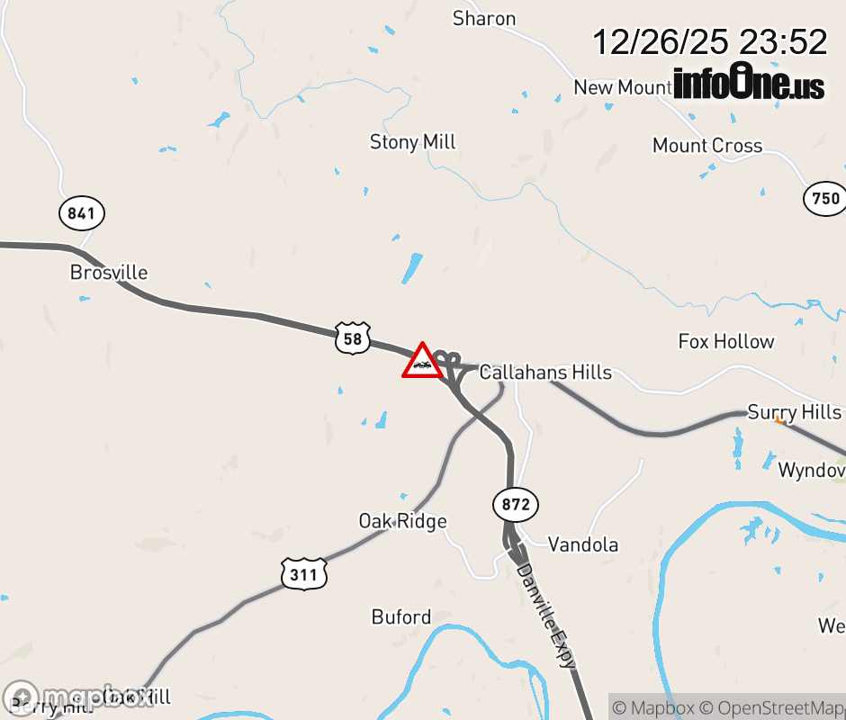 On Rt. 878 North in the County of Pittsylvania, in the vicinity of Martinsville Hwy; Old Farm Rd; Pineview Rd; US-58E, motorists can expect delays due to a disabled tractor trailer. Lane closures exist. Updated: Fri 12/26/25 11:52 PM EST ![]() Updated: Fri 12/26/25 11:52 PM EST |