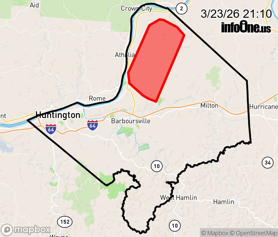 Canceled 3/23/26 9:40 PM Cabell County has 1 power outage affecting 668 customers. Appalachian Power 668 without power Ona: Customers affected: 237 (10%) Estimated repair: Tue 9:00 PM Lesage: Customers affected: 163 (15%) Estimated repair: Tue 9:00 PM Huntington: Customers affected: 11 (< 1%) Estimated repair: Tue 9:00 PM Updated: Mon 3/23/26 9:10 PM EDT ![]() Updated: Mon 3/23/26 9:10 PM EDT |