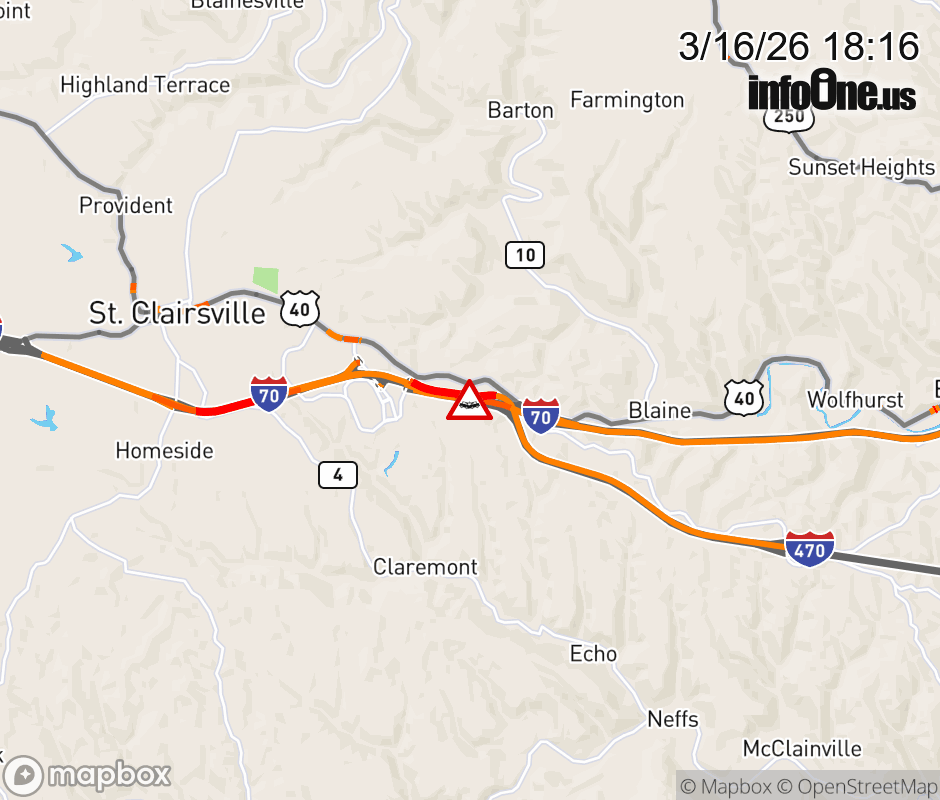 All lanes are closed on I-470 East at I-70 East expect lane closures on I-470 West beyond Bellaire-High Ridge Rd, due to a crash. ![]() |