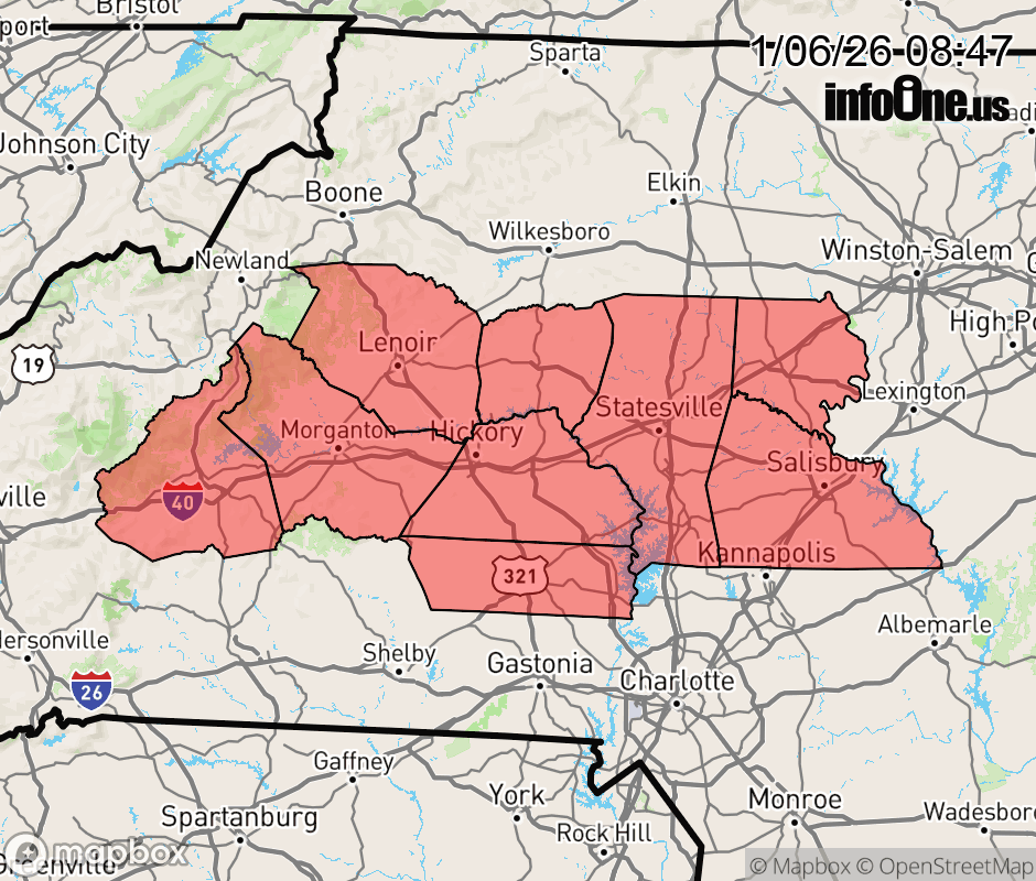 Canceled 1/6/26 9:57 AM Dense Fog Advisory issued January 6 at 8:45AM EST until January 6 at 10:00AM EST by NWS Greenville-Spartanburg SC * WHAT... Visibility one quarter mile or less in dense fog. * WHERE... Alexander, Catawba, Davie, Iredell, Lincoln, Rowan, Eastern McDowell, Greater Burke, and Greater Caldwell Counties. * WHEN... Until 10 AM EST this morning. * IMPACTS... Low visibility could make driving conditions hazardous. ![]() |