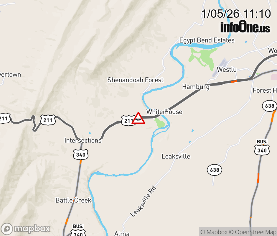 On US-340 North in the County of Page, in the vicinity of Egypt Bend Rd; Longs Rd; Rt. 615N/S (Page County), motorists can expect delays due to a vehicle crash. Updated: Mon 1/5/26 11:10 AM EST ![]() Updated: Mon 1/5/26 11:10 AM EST |
